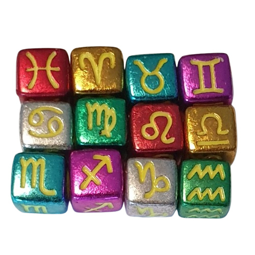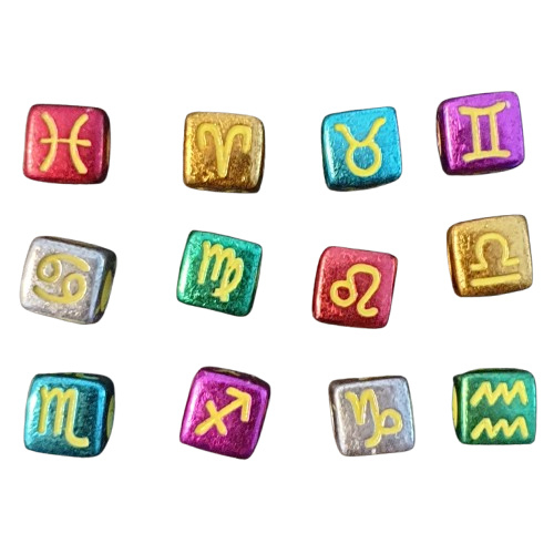 Artikelnummer: 42042 OverzichtMix van 20 verschillende metallic gekleurde kralen met een sterrenbeeld teken erop. De mixen verschillen in kleur , maar alle tekens zitten er in elk geval wel in.