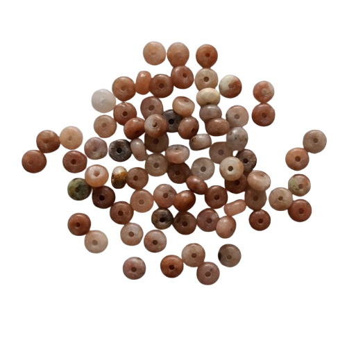 Een mix van 10 marmer discvormige kraaltjes van ca. 2x4mm in zachtroze en beige tinten.