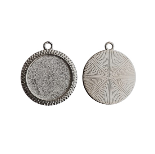 Artikelnummer: 67009 OverzichtHanger met sierrand met een ribbelpatroon, geschikt voor een 20mm cabochon. Mooi met een klassieke cabochon, zoals een camee plaksteen of een parel, maar hij doet het ook goed met een strakker geometrisch patroon. Waar ga jij voor?