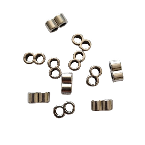 Kraal met dubbel rijggatIdeaal om twee draden met elkaar te verbinden, bijvoorbeeld twee draden met rocailles als armbandje.