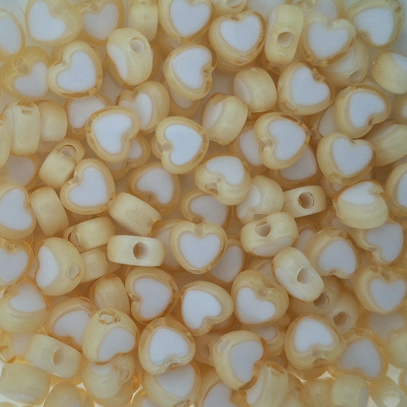 Acryl hart groot gat geelHartvormige acryl kraal van ca. 10x9mm met een rijggat van ca. 3,8mm. Hierdoor is deze kraal ook geschikt voor dikker rijgmateriaal of voor meerdere rijgdraden.